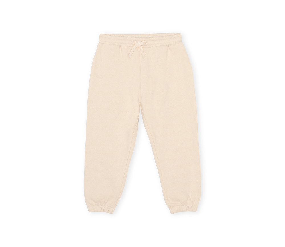 Coole Sweatpants aus reiner Bio-Baumwolle von Konges Sløjd. Die Hose hat einen elastischen Taillenbund mit Kordel sowie elastische Fußbündchen und eine Tasche an der Vorderseite sowie eine Tasche auf der Rückseite.
