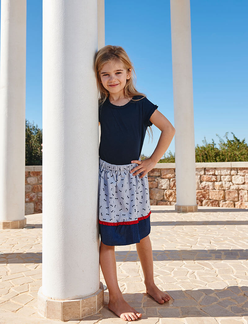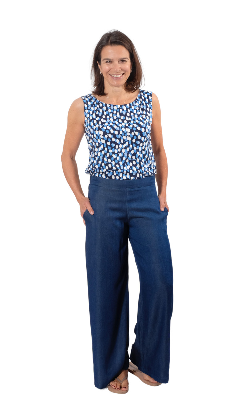 Dieser leicht fallende Viskosestoff eignet sich sehr gut für leichte Hosen, Blusen, Tuniken oder Kleider. Abbildung Schnittmuster Hose Cynthia und Cosima. Rock Gabriele (Streifen) und Bluse Birte in einem helleren Ton. Dieser Stoff ist nur noch begrenzt am Lager und in 0,5 Meter Einheiten zu kaufen. Natürlich werden alle gekauften Einheiten am Stück geliefert.