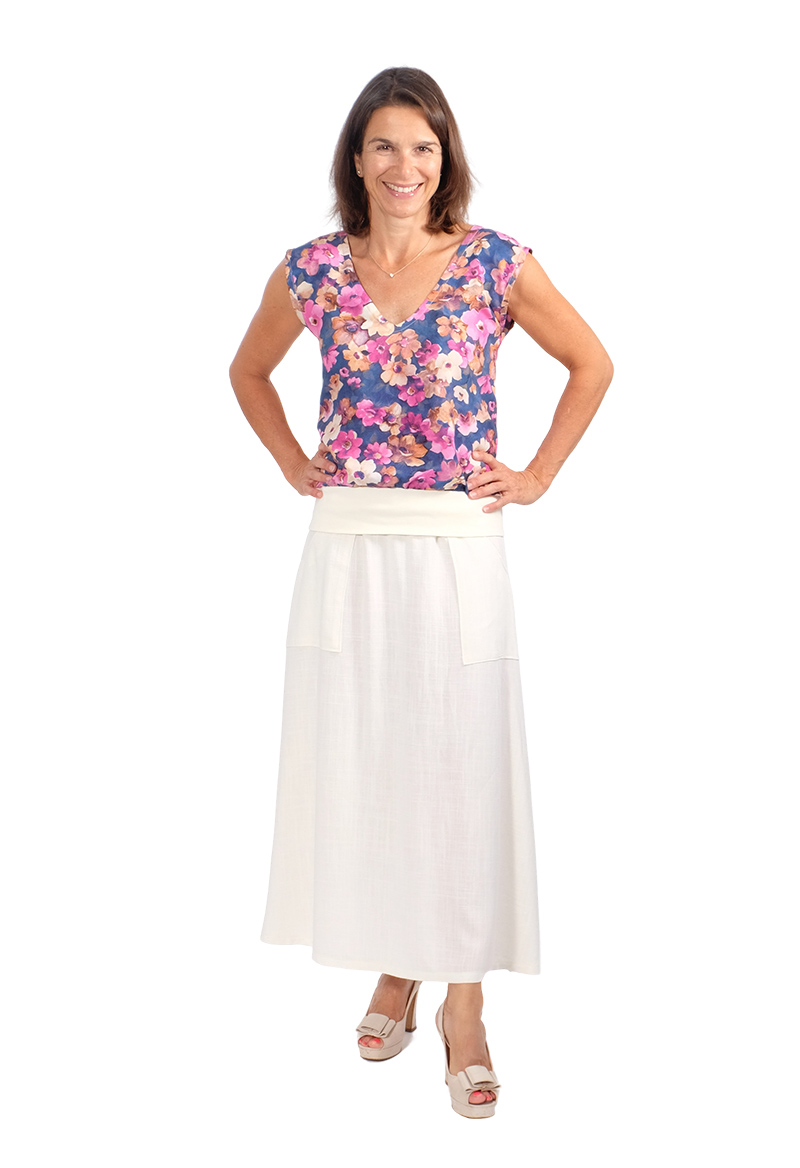 Ein hochwertiger Leinenstoff, leicht fallend. Das Material eignet sich daher ideal für weite Hosen, Röcke, Blusen, Kleider etc. Abbildung Schnittmuster Jacke Jasmina in Originalfarbe, Hose Cynthia. Bluse Kirsten und Rock Viola und Kenda in anderen Farben und ähnlichen Qualitäten zur Inspiration. Abbildung diverser Schnittmuster in gleicher Qualität unifarben zur Inspiration. Dieser Stoff ist nur noch begrenzt am Lager und in 0,5 Meter Einheiten zu kaufen. Natürlich werden alle gekauften Einheiten am Stück geliefert.