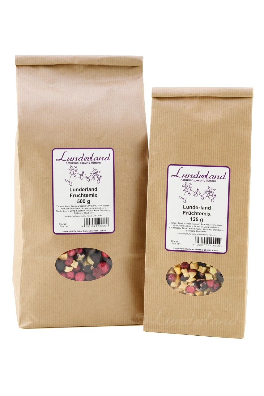 Generell enthält der Lunderland-Früchtemix viele Mineralien, Vitamine und sekundäre Pflanzenstoffe.