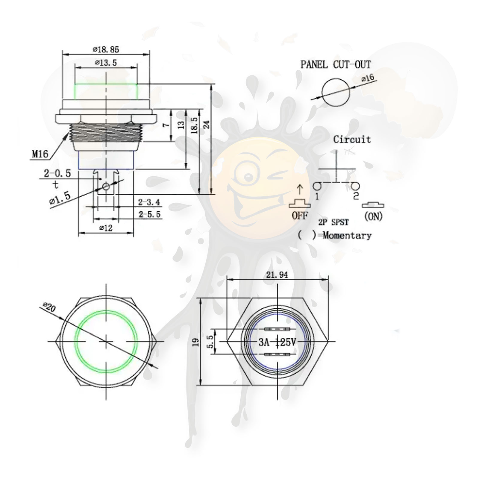 M16mm DS-212 12VDC 125VAC 3A Taster Push Button Metall rot gelb schwarz grün gelb weiß |