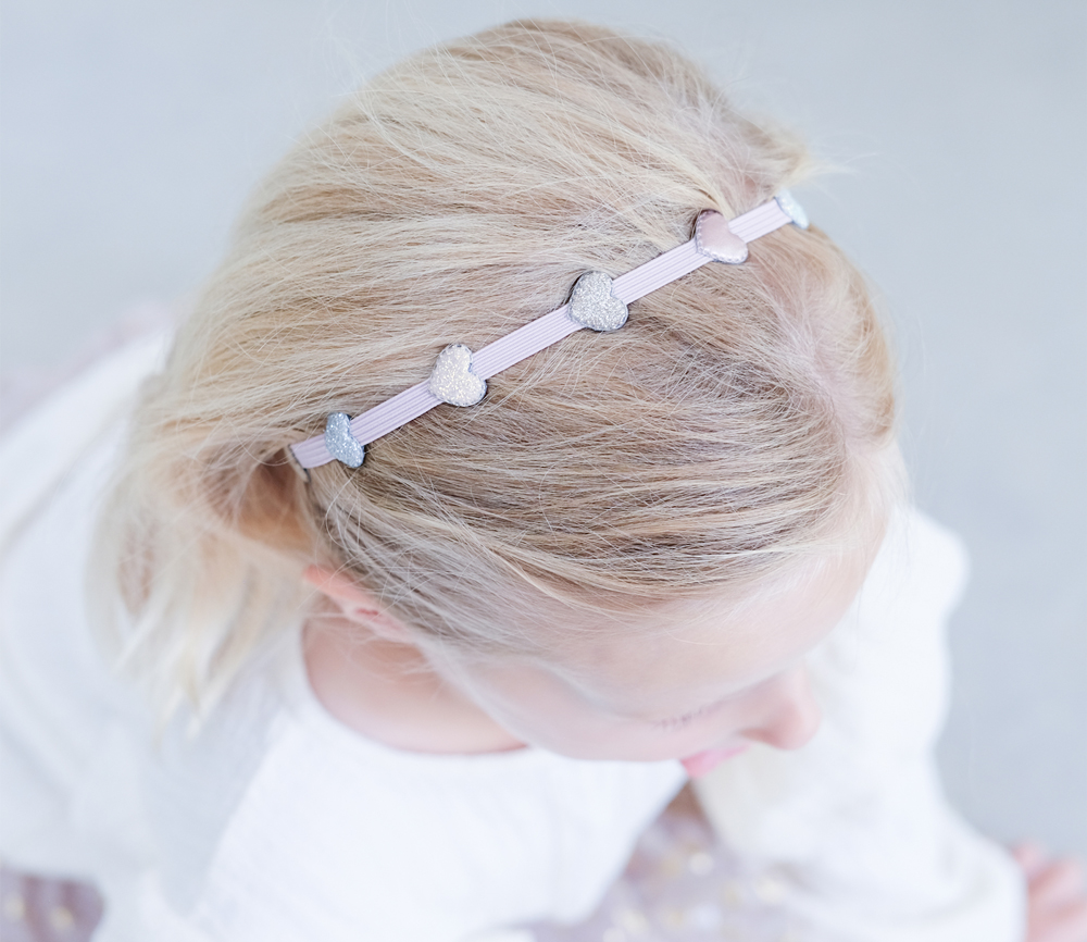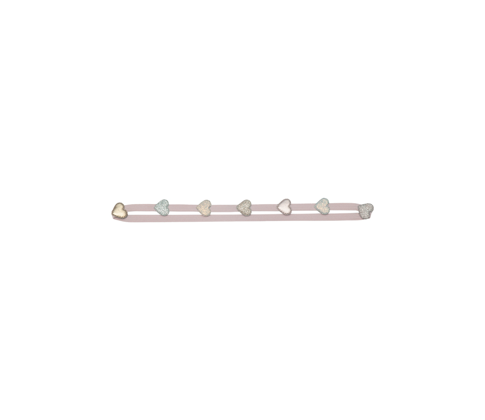 - Superweiches rosa Gummiband, verziert mit 7 gepolsterten Glitzer- und Metallic-Stoffherzen
