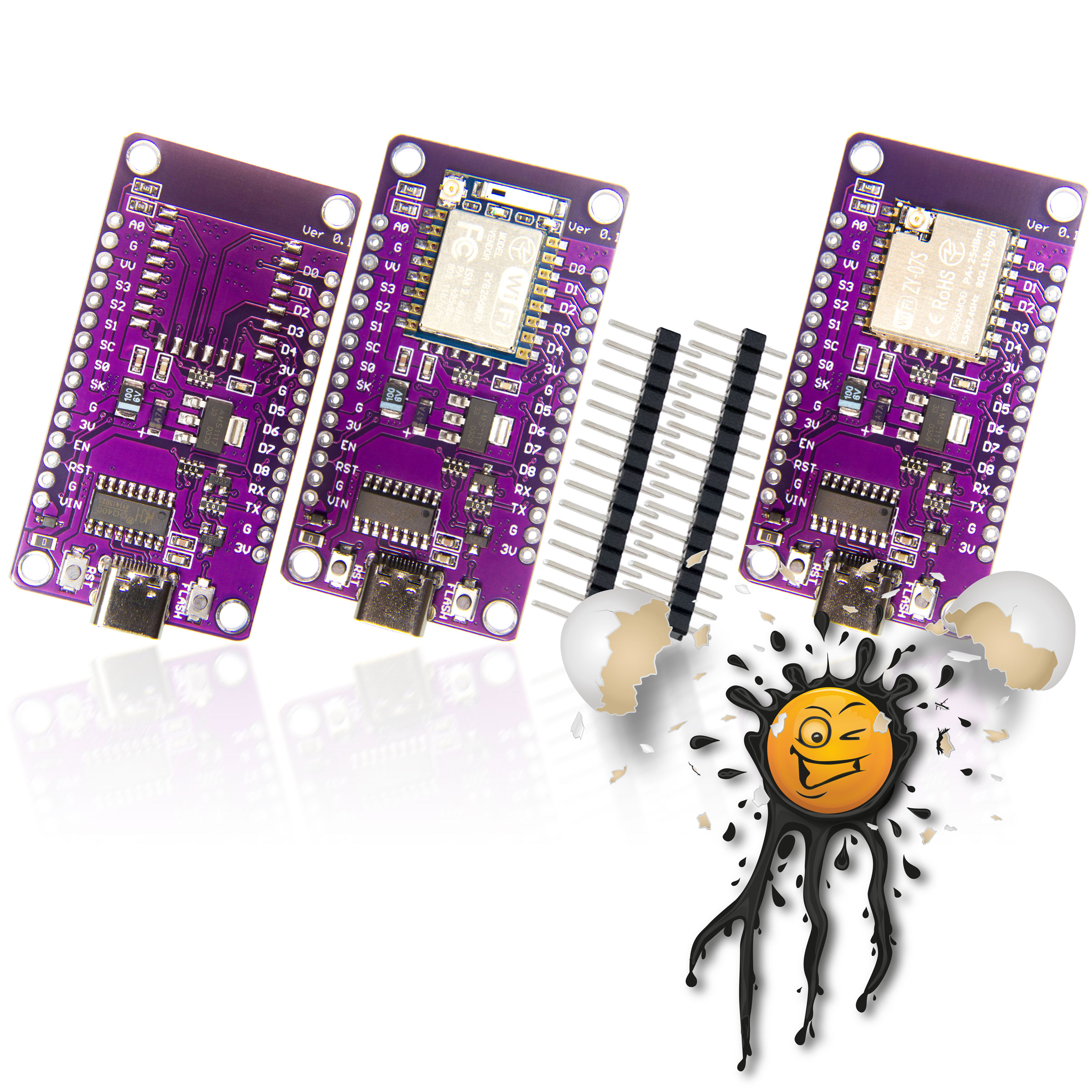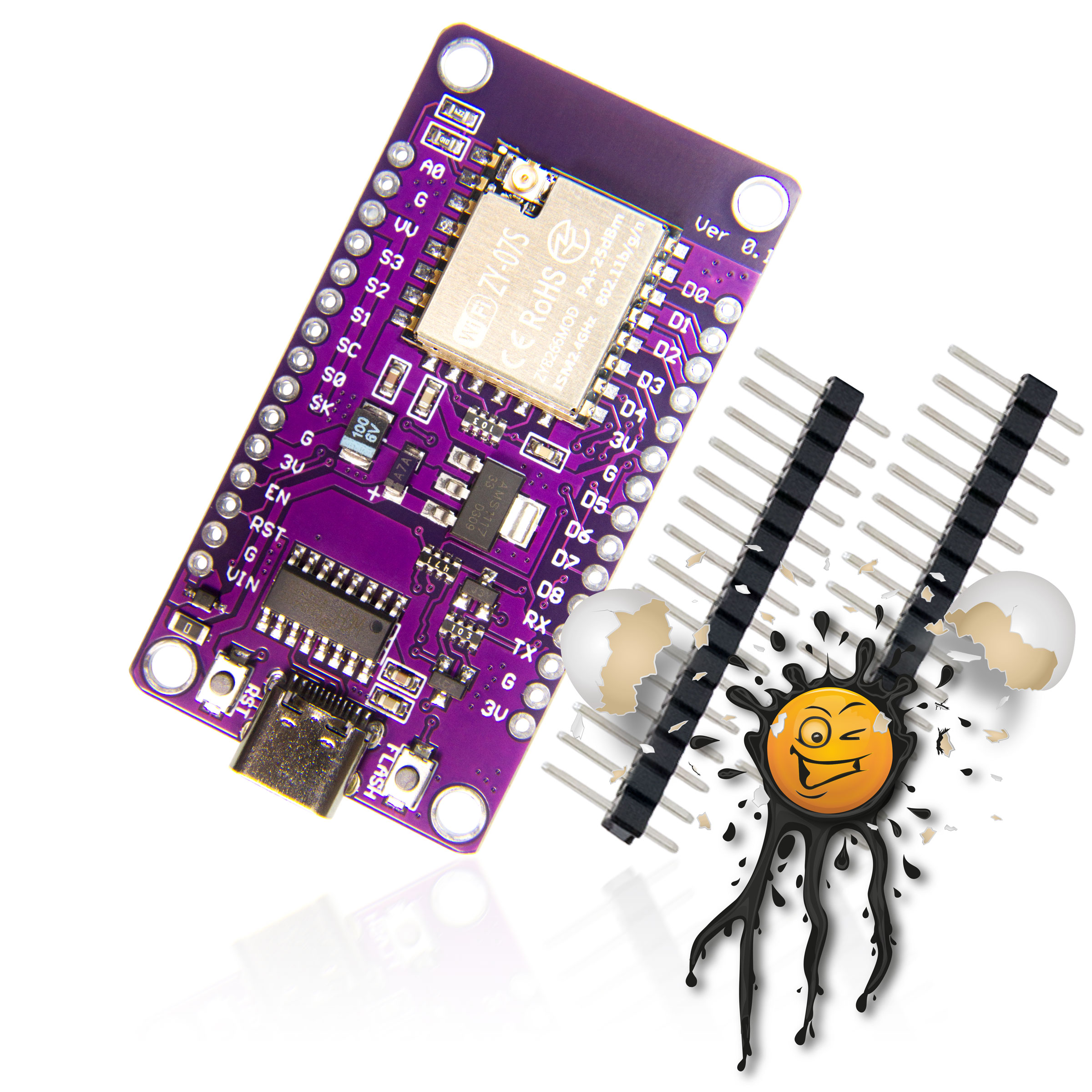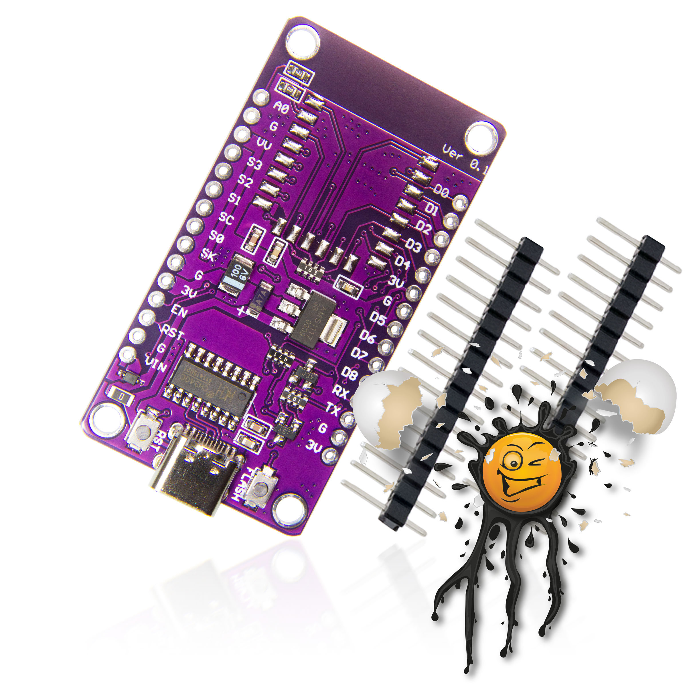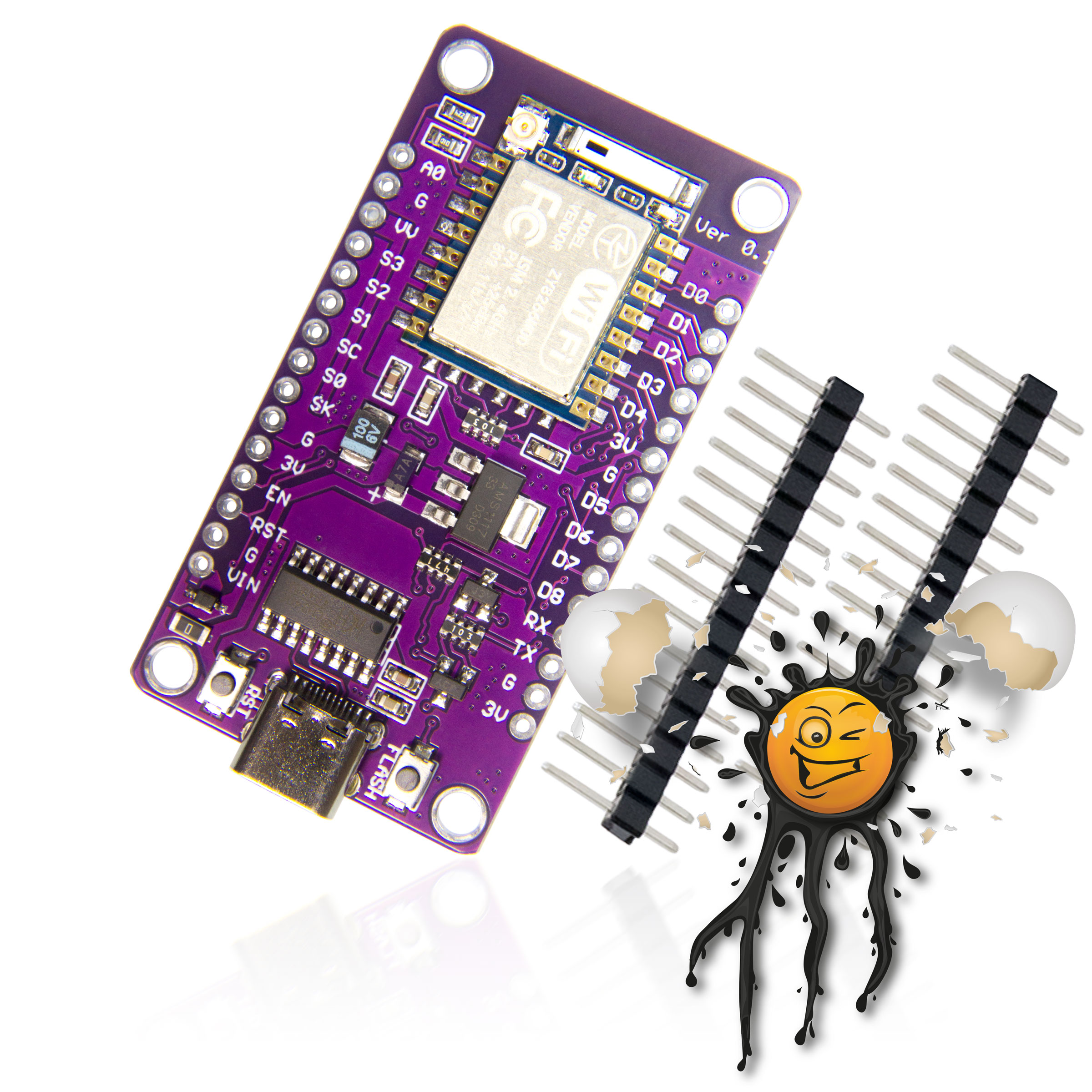 USB-C ESP8266 NodeMCU Development Boards / Adapter incl. Pin Headers © androegg