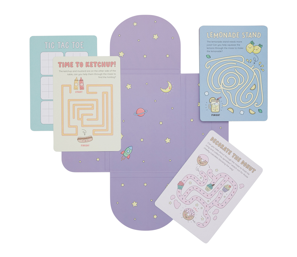 Packung mit Mini-Labyrinth-Papierspielen! Dieses Labyrinthbuch für Kinder enthält 24 verschiedene Labyrinthe, sodass sie im Handumdrehen einen Weg aus der Langeweile finden. Auf der Rückseite jedes Blattes befinden sich Bonus-Tic-Tac-Toe-Spiele, denn OOLY liebt X und O! Wenn Sie einen kleinen Rätselmeister haben, sollten Sie sich dieses Labyrinthbuch unbedingt zulegen. Die Mini-Labyrinth-Aktivitätskarten von OOLY bieten 24 verschiedene Designs, sodass jede Karte ein kleines Rätsel für sich ist. Es ist eine großartige Ergänzung für ein Geburtstagsgeschenk oder die perfekte Aktivität für unterwegs, damit keine Langeweile aufkommt. Noch besser: Auf der Rückseite jeder Miniseite in diesem Labyrinthbuch befindet sich Tic Tac Toe, also … lasst die Spiele beginnen!