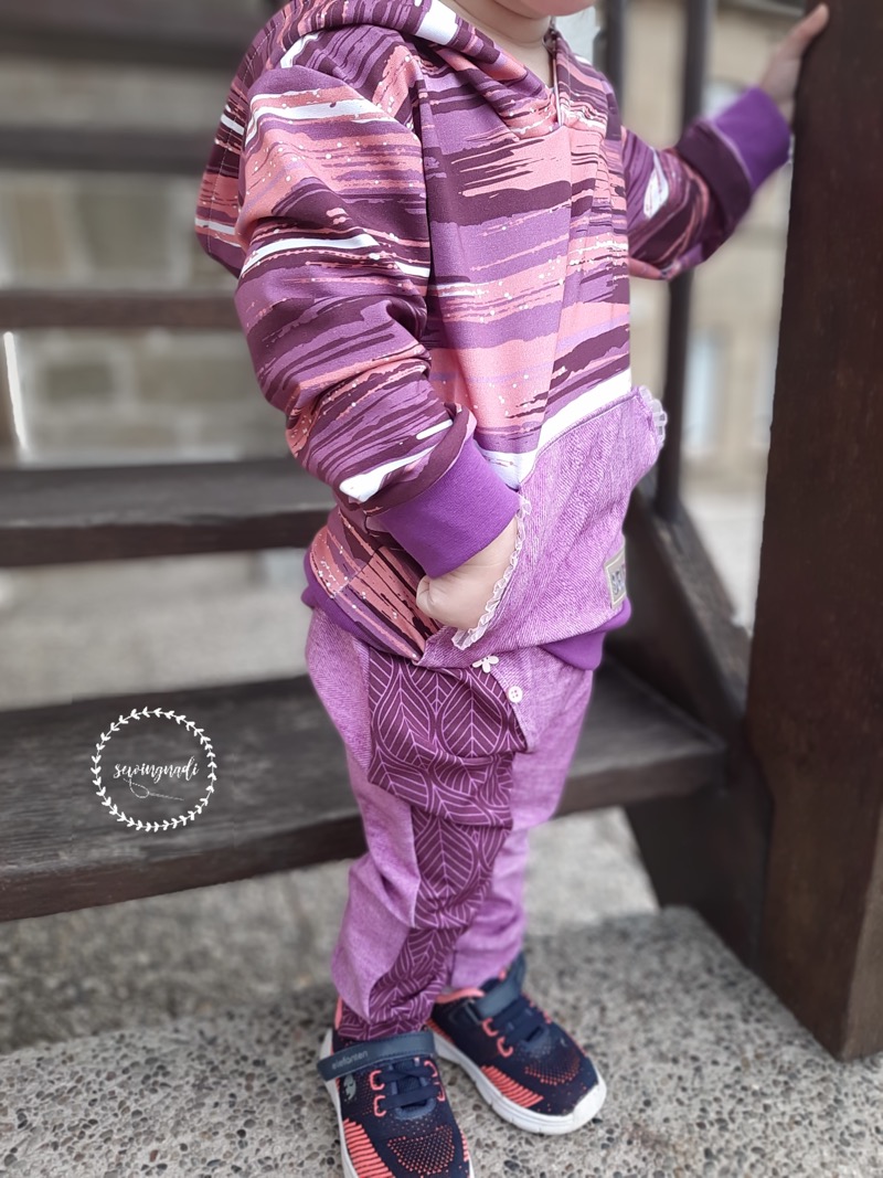 Eine Hose mit dem gewissen Etwas. Durch die unterschiedlichen Schnittteile hast Du viele Möglichkeiten, die Hose immer wieder anders aussehen zu lassen. Hier kannst du richtig kreativ werden. Im Ebook wird alles ganz genau erklärt. Der Schnitt lässt sich auch für Anfänger gut umsetzen. Wer möchte, kann sich hier noch eine Vorlage für die seitlichen Taschen herunterladen und diese einarbeiten.
