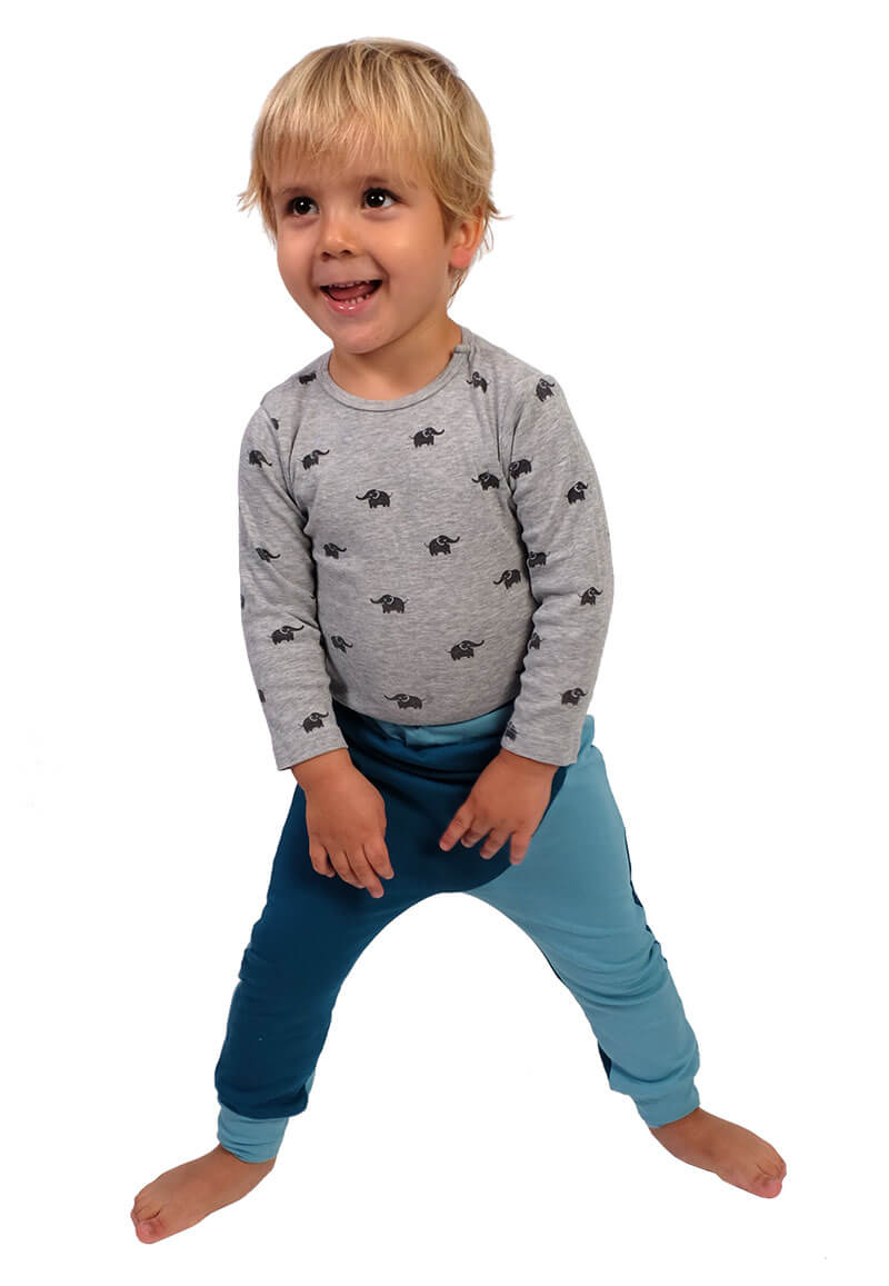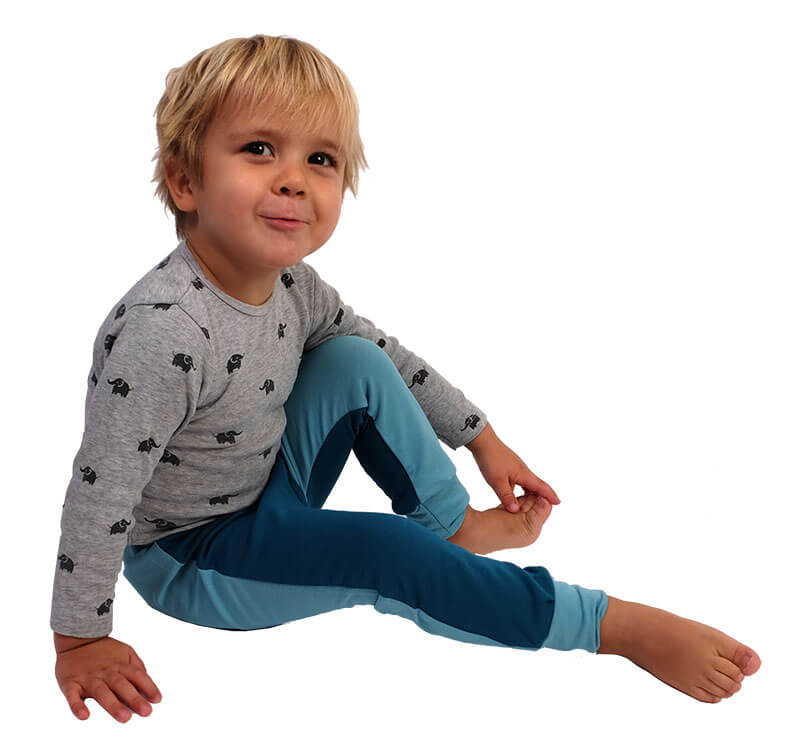 Materialvorschlag: Alle weichen, dehnbaren Stoffe. Diese Hose kann aus Sommer und Winterstoffen genäht werden.