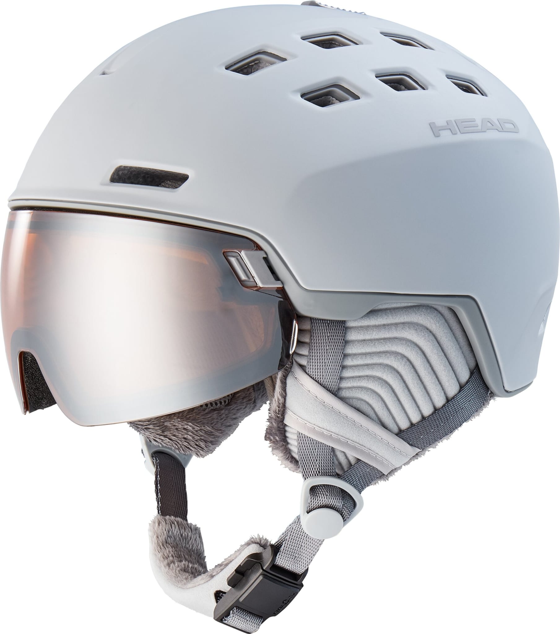 Für die rasante Skifahrerin ist der Skihelm Rachel von Head ein mehrfach prämierter, kompetenter Partner mit praktischen Features! Sein sportliches Design macht auch optisch was her. Mit der In-Mold Technologie werden Innen- und Außenschale des Helm fest miteinander verbunden, was für zuverlässige Robustheit und einen hervorragenden Rundumschutz bei einem Sturz sorgt. Der Helm verhindert schwere Verletzungen durch einen harten Aufprall. Damit die Sportlerin auch unter Anstrengung einen kühlen Kopf bewahrt, ist der Helm mit regulierbaren Belüftungsöffnungen ausgestattet. Je nach Wärme und Bedarf werden diese reguliert. Für einen tollen Komfort sorgt das weiche Innenfutter aus Fleece. Die wärmenden Ohrpads sind bei Bedarf abnehmbar. Besonders praktisch ist das Visier, das mit der Schutzkategorie 2 den idealen Blendschutz an wechselhaften Tagen liefert. Natürlich lässt es sich unkompliziert austauschen(Ersatzscheibe nicht im Lieferumfang enthalten). Für einen sicheren Sitz sorgt der Fidlock-Verschluss und der verstellbare Kinnriemen. Ein sportlicher Partner, der Style und Schutz perfekt kombiniert, das ist der Rachel!