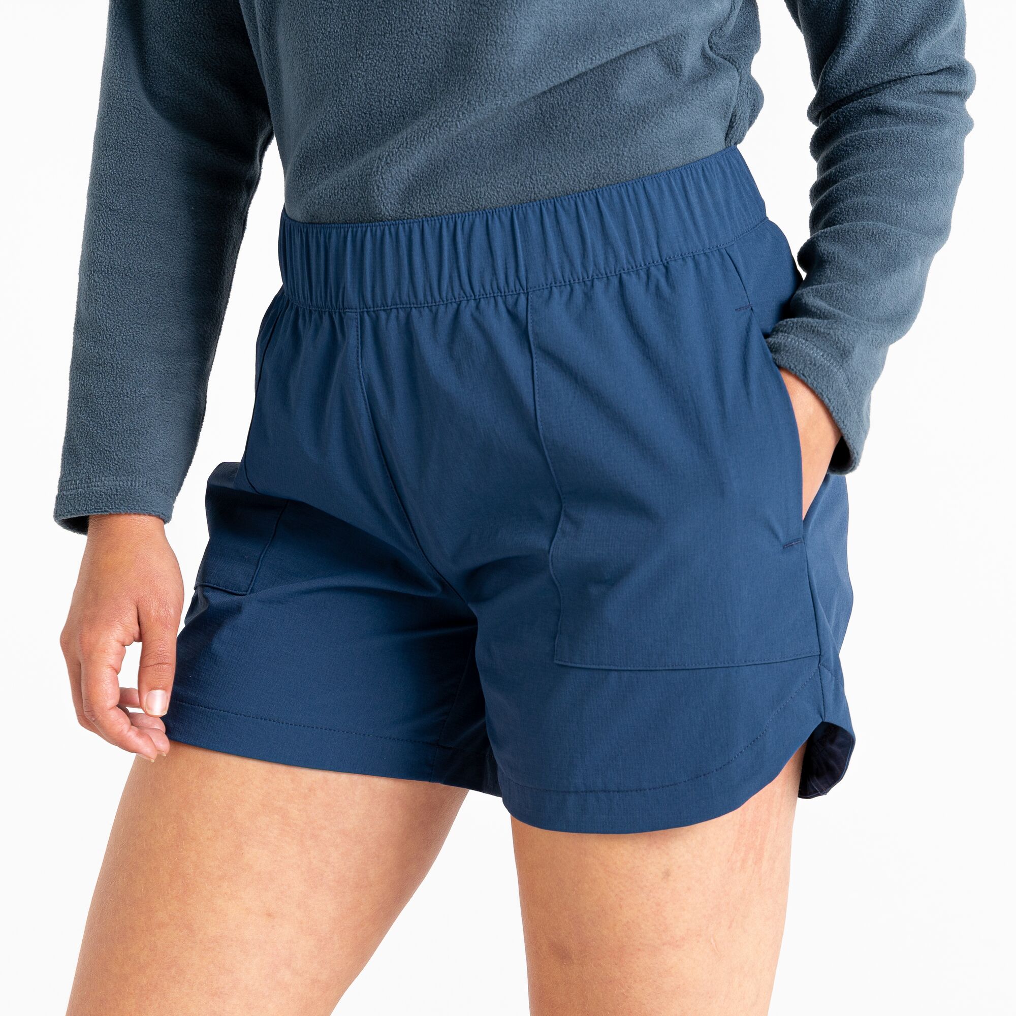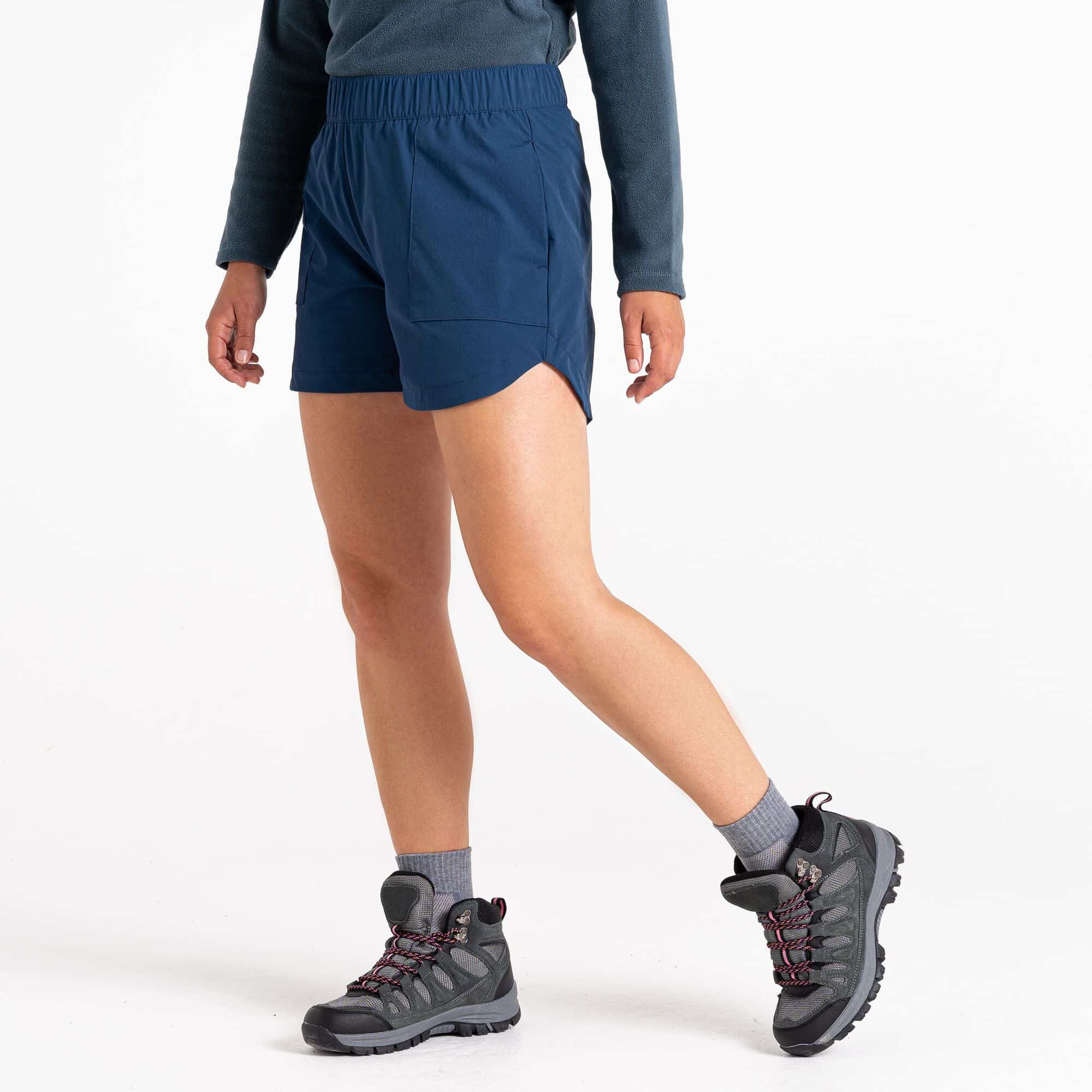 Die Rapport Shorts für Damen. Diese Shorts mit elastischem Bund bietet eine perfekte Passform und hat 2 offene Seitentaschen sowie einen geschwungenen Saum mit Seitenschlitzen. Ideal für Wanderungen im Sommer. Außerdem verfügt diese Shorts über einen elastisschen Taillenkordelzug und 2 seitlichen Eingrifftaschen.