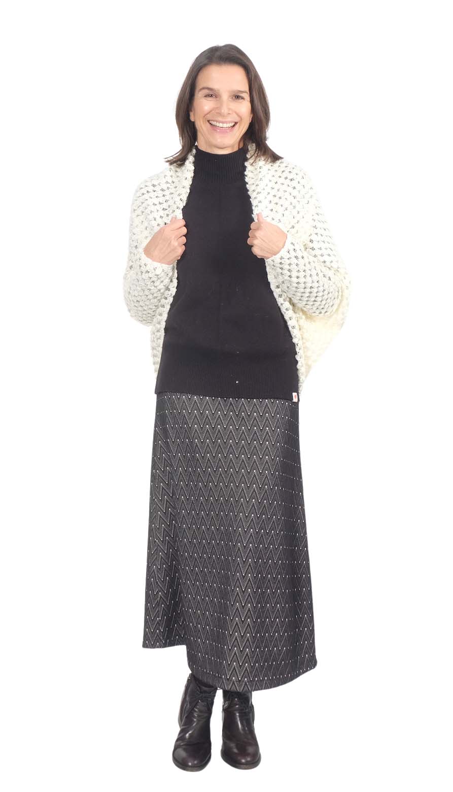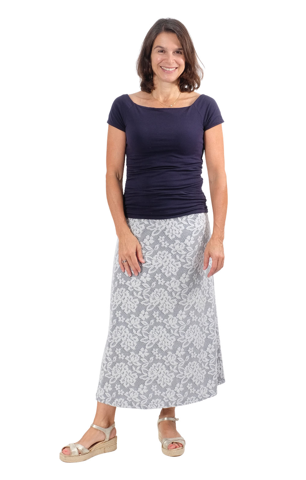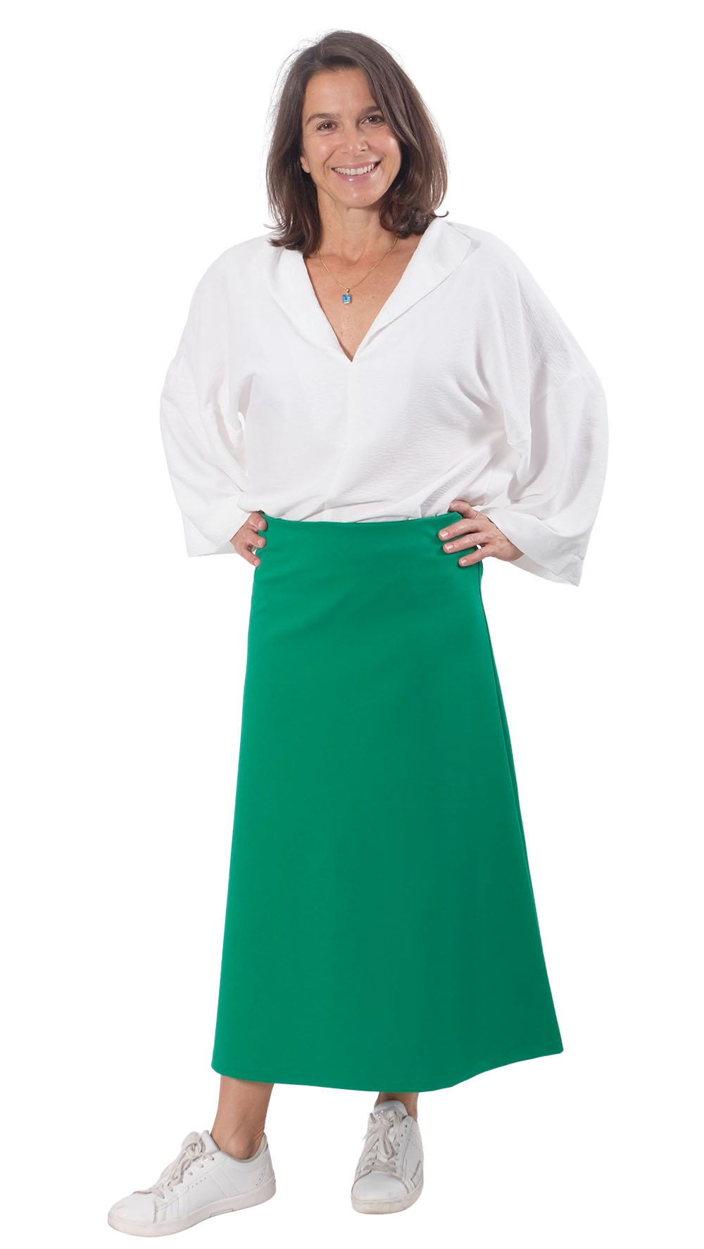 Dieser Rock ist ein wundervoller Begleiter durch das ganze Jahr. Der Rock kann aus allen dehnbaren Materialien genäht werden. Er wird ohne Reißverschluss verarbeitet, also für Nähanfängerinnen super gut machbar. Du kannst den Rock mit oder ohne Schlitz verarbeiten.