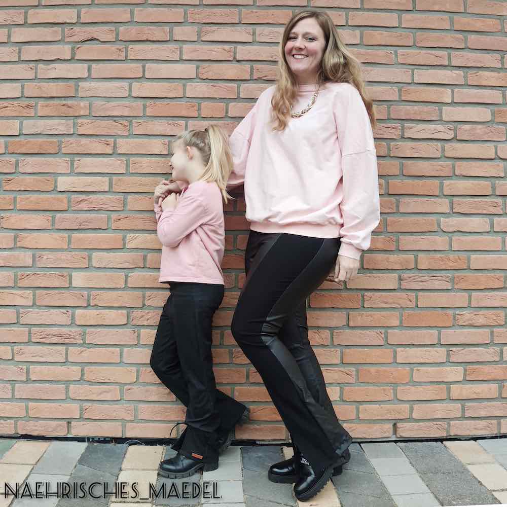 Diese schmale Hose mit ausgestelltem Bein ist ein toller Begleiter durch das ganze Jahr. Ob Du sie mit oder ohne Schlitz vorne nähst, es wird immer wieder anders aussehen. Dies ist auch ein schönes Mutter Tochter Projekt..)