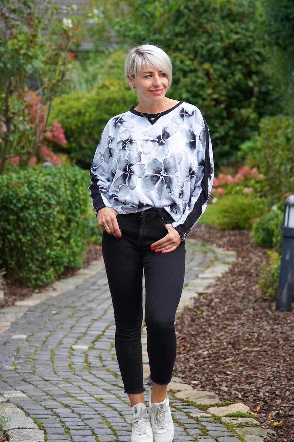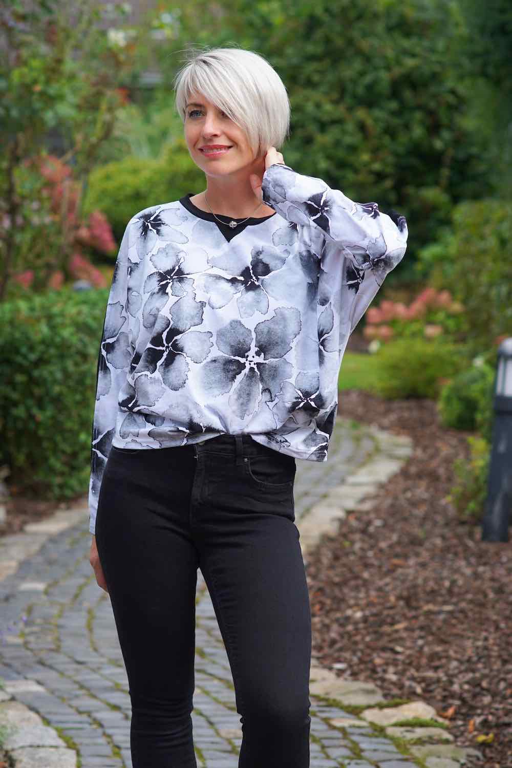 Den Style mit Fledermausärmeln kannst Du auf unterschiedliche Arten nähen Mit langem Arm oder für den Sommer mit kurzen Ärmeln und Bündchen. Wenn Du zwischen zwei Größen steckst werden beide Größen passen. Dieses Shirt sieht nicht nur cool aus, es ist auch ganz einfach genäht, ein tolles Projekt für Anfänger, traut Euch da ruhig ran.