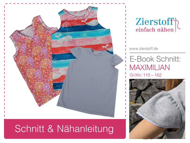 Nähanleitung & Schnitt für ein Unisex T-Shirt mit Rundhals oder V-Ausschnitt “MAXIMILIAN”, Gr. 110 – 152