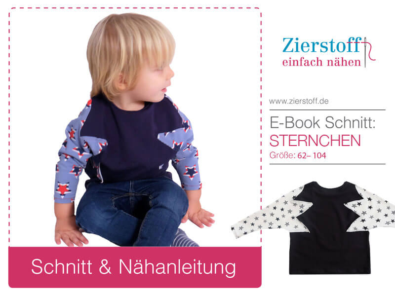 Nähanleitung & Schnitt für ein Shirt mit Sternen-Ärmel “STERNCHEN”, Gr. 62 – 104