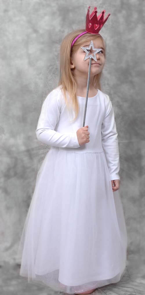 Ein hübscher Tüll mit einem schönen Griff in Rosa / Nude. Abbildung Schnittmuster Kleid Paris in weiß und Rock Larissa in rosa und schwarz.