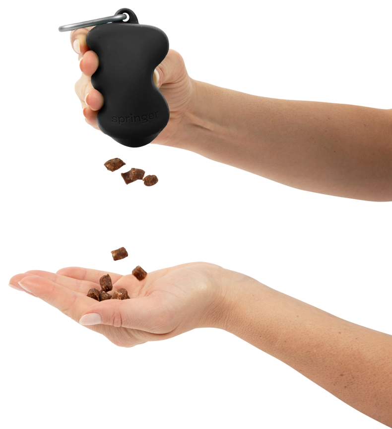 Schreibe die erste Bewertung für „Springer Leckerli-Spender aus Silikon, lebensmittelecht, mit Karabiner, einzigartige Form für einfaches Drücken (schwarz, grün, rosa)“