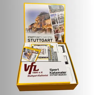 STADTPUNKT Stuttgart ist ein unterhaltsames Quiz-Wissensspiel, welches aus ca. 1.000 Fragen zur Stadt, zu Firmen, zum allgemeinen Wissen und Fragen extra für Kinder besteht.
