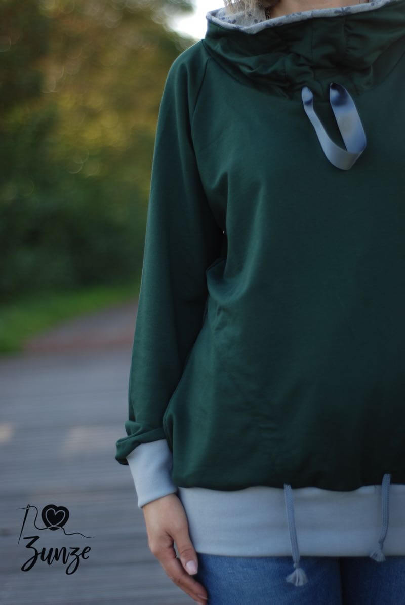 Materialempfehlung: Wir empfehlen leichte Sweatshirtstoffe. Diese fransen nicht aus und müssen daher auch nicht versäubert werden.