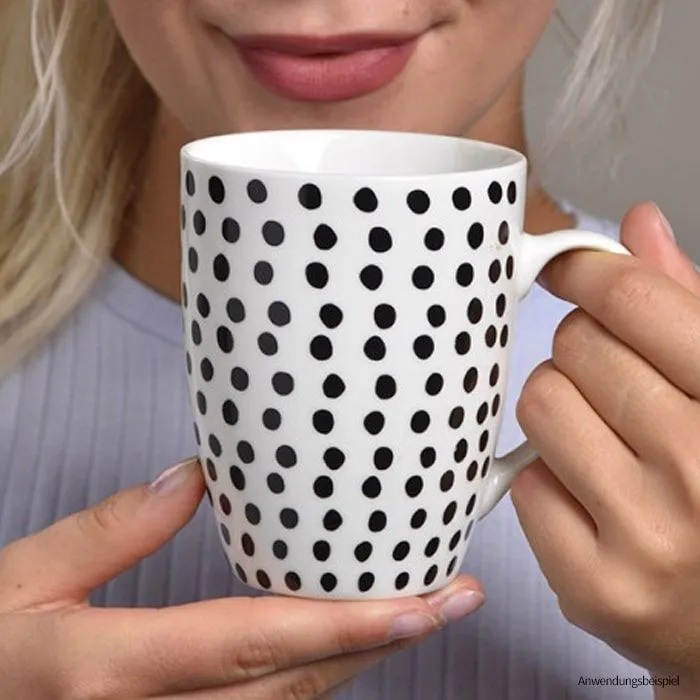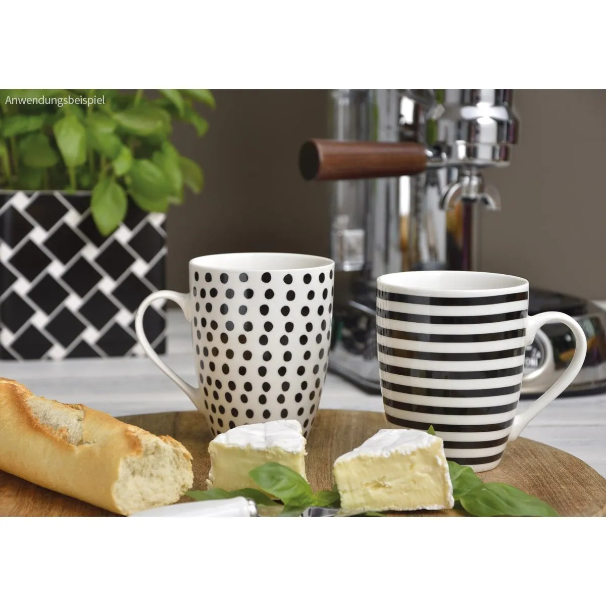 - 48 Stk. Porzellan-Becher Tassen im trendigen Schwarz-Weiß-Design. 2-fach sortiert. Je 24x mit Punkten und Streifen. Auslieferung erfolgt sortiert wie abgebildet.
