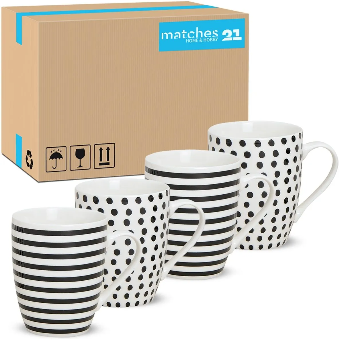 matches21 Becher Tassen Kaffeetassen Kaffeebecher Streifen & Punkte schwarz / weiß Keramik 48 Stk. 10 cm / 300 ml
