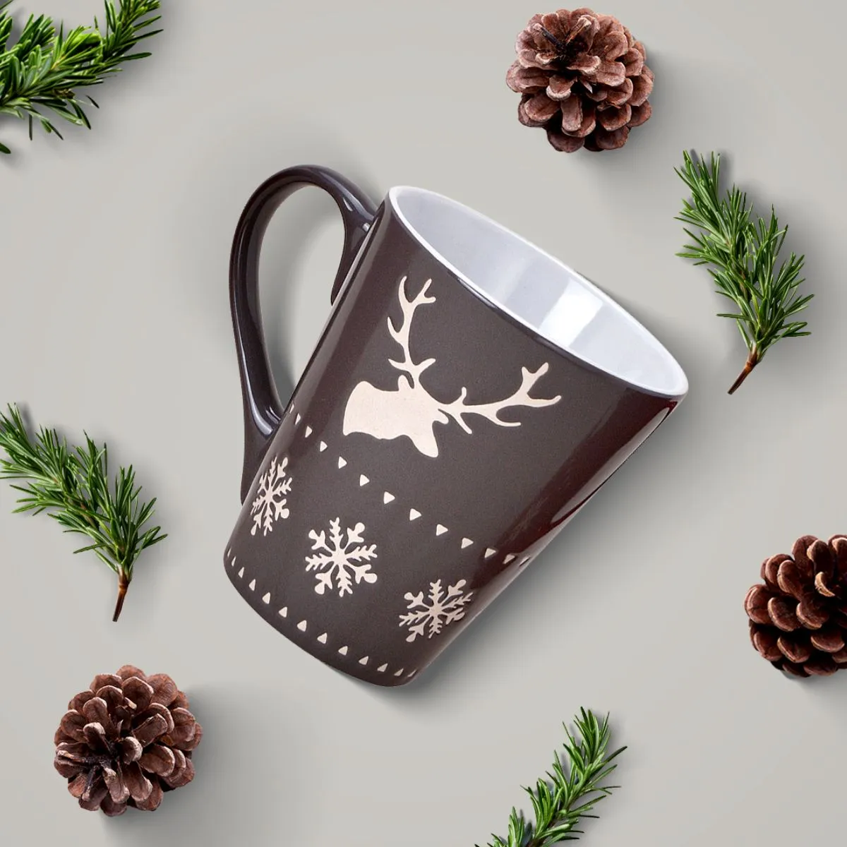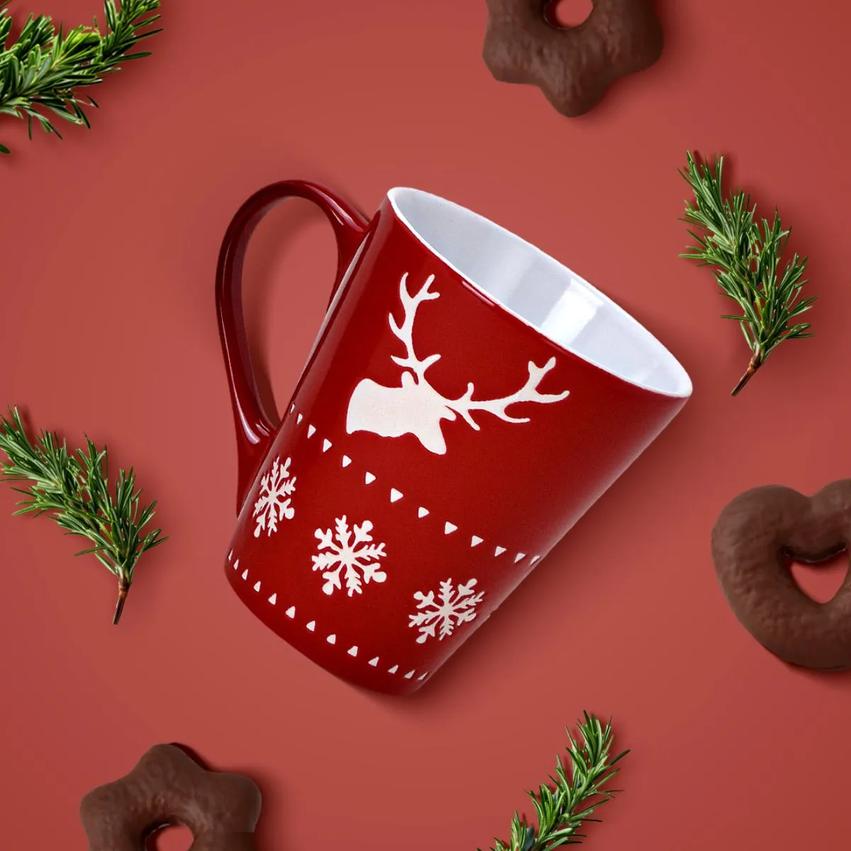 - 1 Set enthält 4 Tassen – weihnachtliche Motive mit Hirschen und Schneeflocken