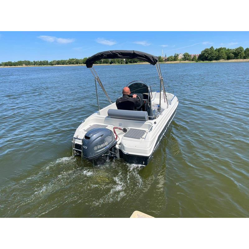 Zum einen bietet es große Staufächer und zum anderen eine moderne Reling für eine schnittige Optik, sowie Sonnendeck und vieles weitere. Die maximale Motorisierung wurde so konzipiert, dass Sie sich auch für Küstennahe Gewässer mit einem 50 PS Motor entscheiden könnten, oder mit einem leistungsstarken E-Motor. Die angelegte Liegefläche bietet mit Ihren Polsterungen angenehmen Komfort, ist leicht zugänglich und ist schön groß und offen angelegt. Wollen Sie mit Ihrer Crew etwas trinken oder ein Morgenfrühstück genießen, so lässt sich ganz easy die Liegefläche mit einem Tischbein und eingebauter Konsole am Boden ein Tisch in der Sitzgruppe anlegen. Eine PVC – Scheuerleiste bietet dem Boot Schutz bei Steg- und Hafenanlagen und ist aus wieder standfähigem Material gefertigt.