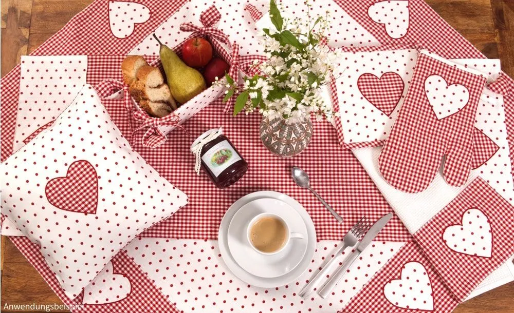 matches21 Tischsets Tischwäsche Stoff Landhaus Stil LISE kariert & Borte mit Herz Applikation 33×48 cm – 2 Farben 1 Stk