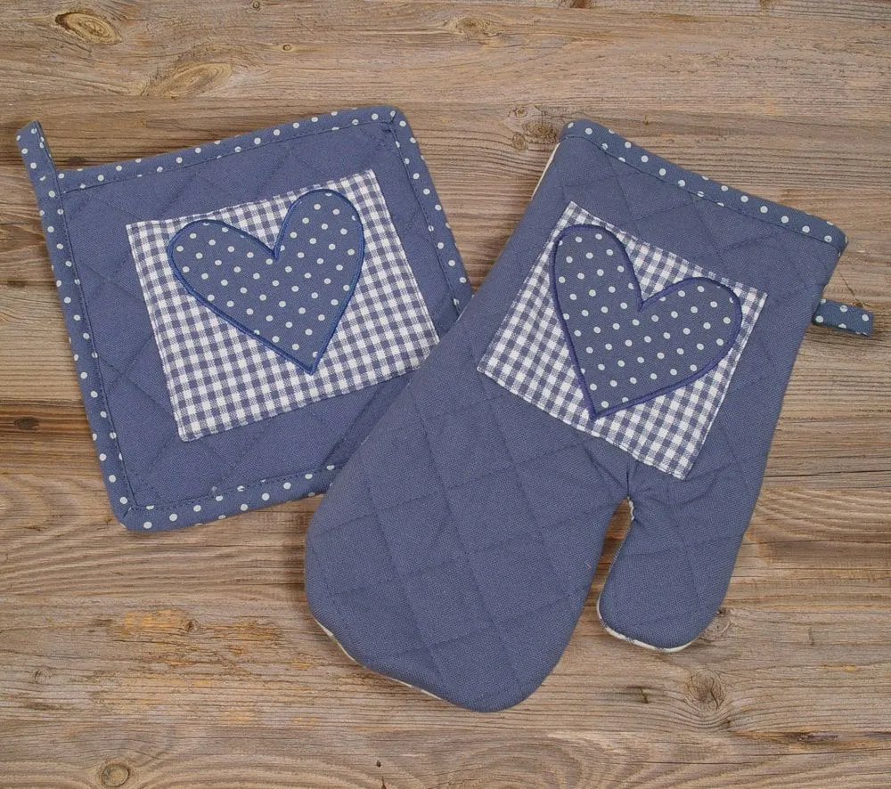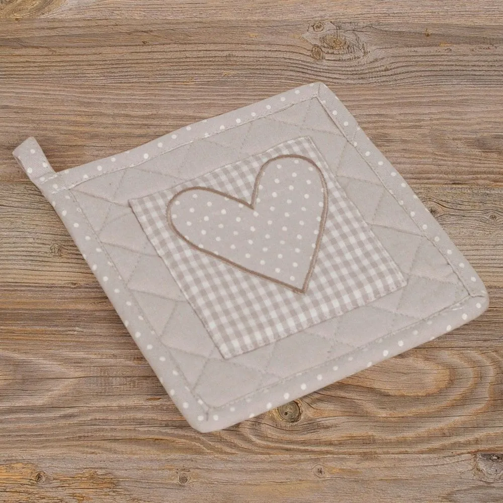matches21 Topflappen Untersetzer Landhaus LINA Herz Applikation Karo Punkte Hitzeschutz Küche 20×20 cm 1 Stk – 3 Farben