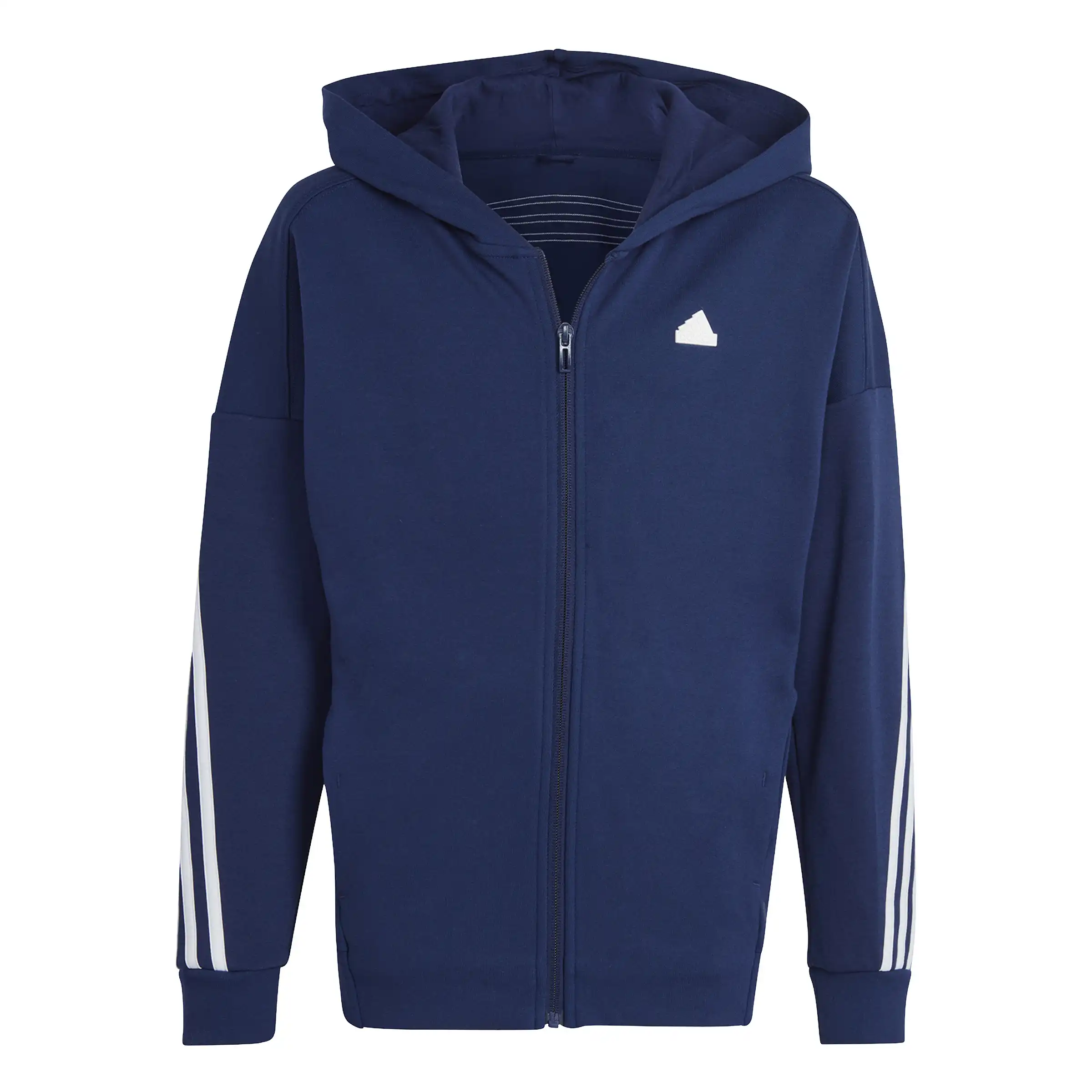 Mit diesem 3-Streifen Style bist du ready für Lagenlooks. Egal, ob du dich nach dem Training entspannst oder mit deinen Freund_innen triffst ? diese adidas Kapuzenjacke für Kinder und Teens ist immer die richtige Wahl. Doppelstrick aus Baumwollmix sorgt für ein kuscheliges Tragegefühl und volle Bewegungsfreiheit. Und wenn es draußen ungemütlich ist, kannst du dir ganz schnell die Kapuze aufsetzen. Dieses Produkt besteht zu mindestens 70 % aus einem Mix aus recycelten und erneuerbaren Materialien.
