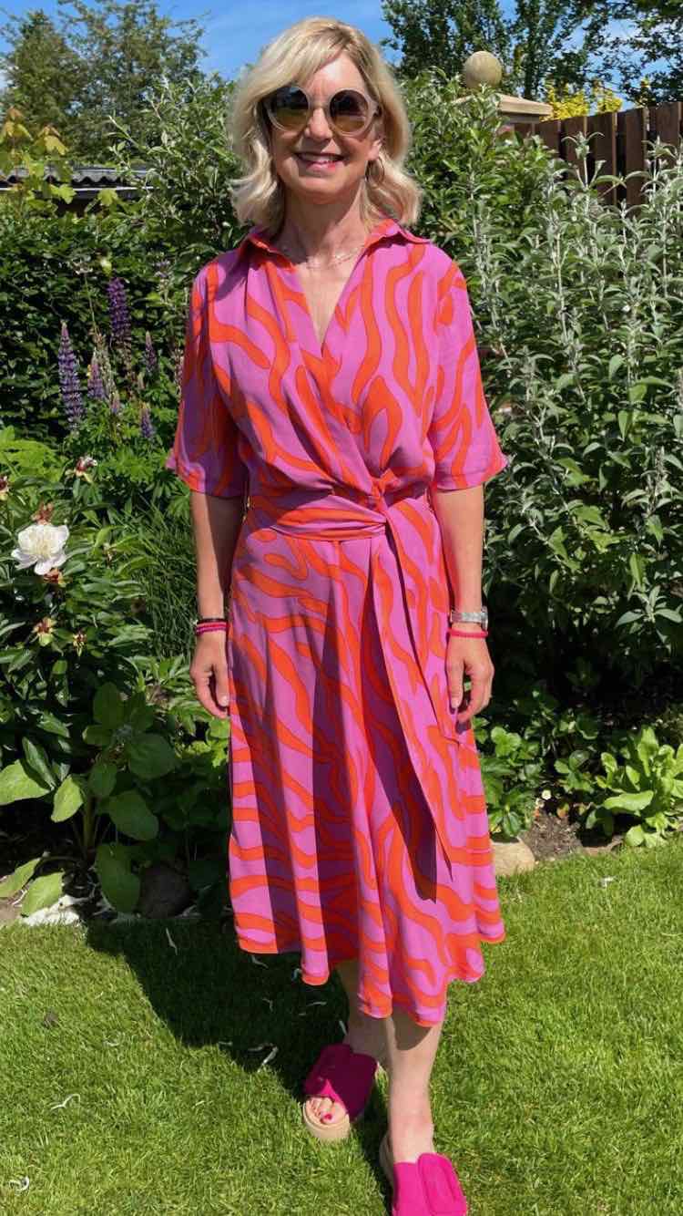 Dieser Viskose Stoff ist leicht fallend und hat eine tolle Haptik. Diese Qualität ist pflegeleicht, knitterarm und bietet einen hohen Tragekomfort. Ideal für Kleider, Hosen und Röcke. Abbildung Schnittmuster Kleid Laurena, Bluse Metta und weitere zur Inspiration wie der Stoff fällt.