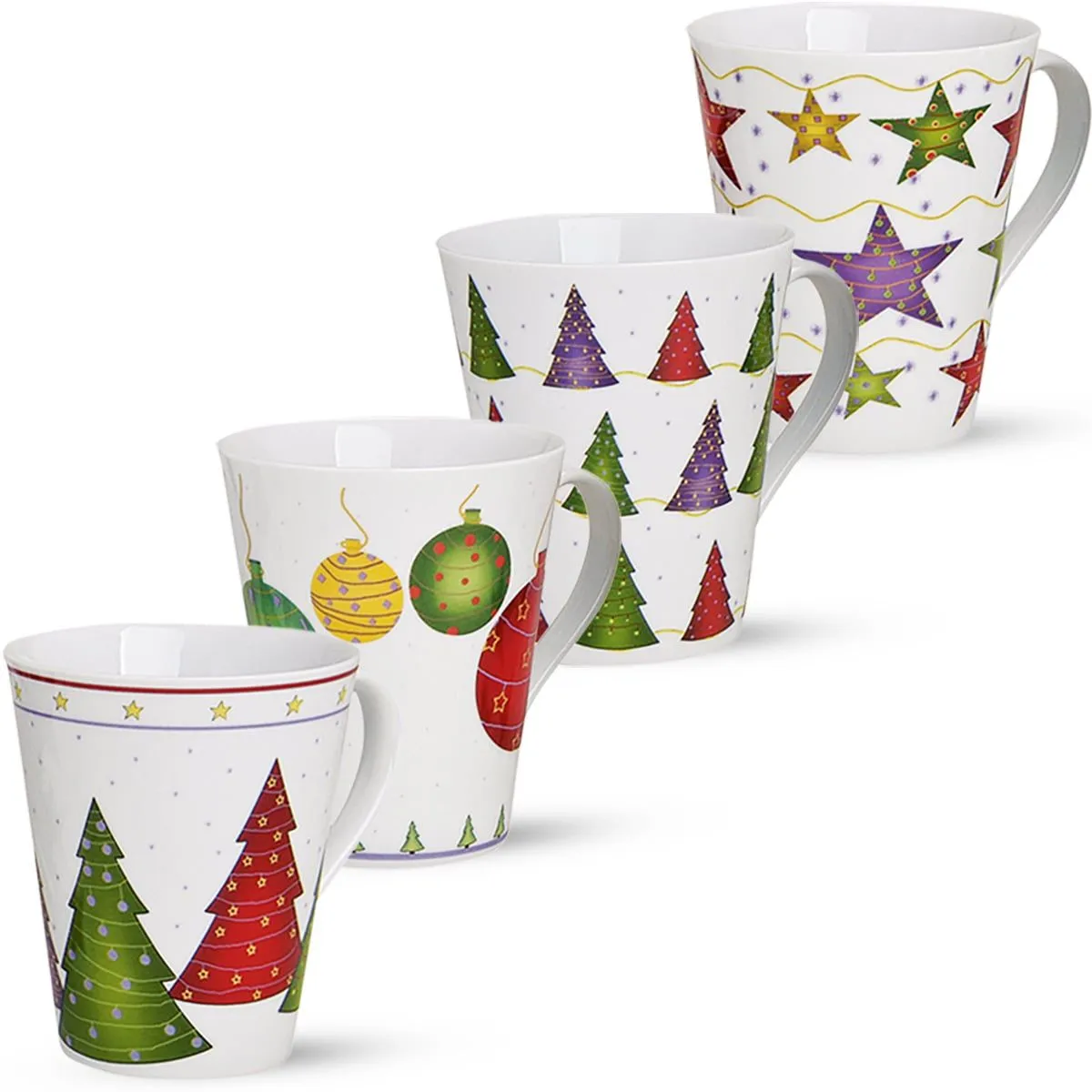Weihnachtstassen Tassen Becher Weihnachtsdekor 4 Stk. je 11cm / 350 ml Porzellan Glühweintassen Kaffeebecher Weihnachtsmotive Weihnachtsdekor