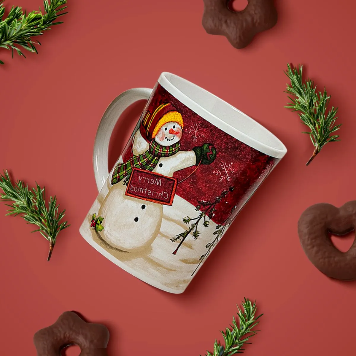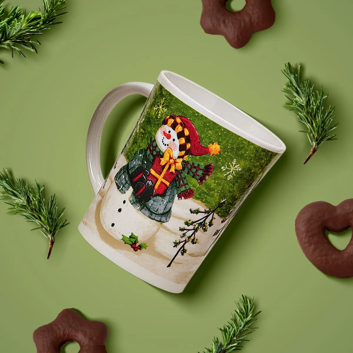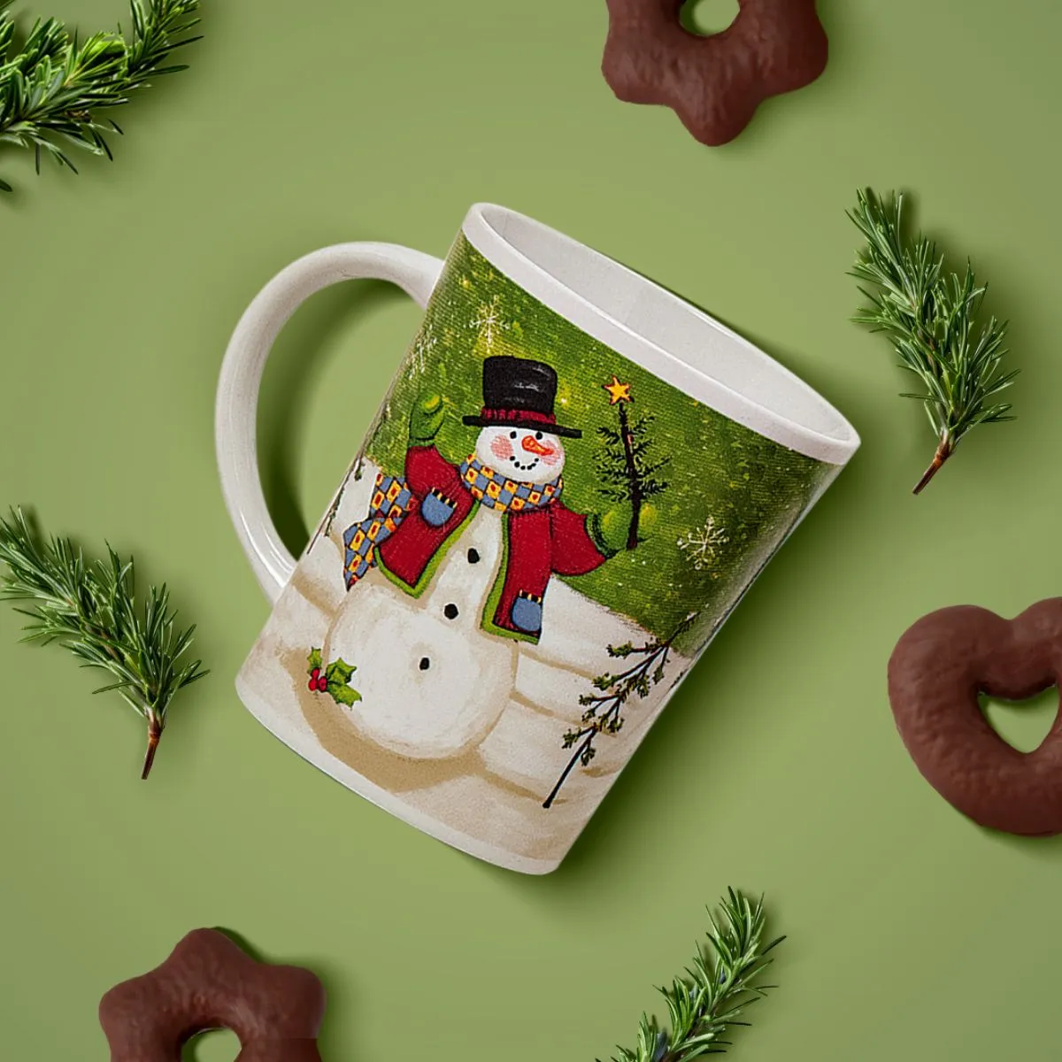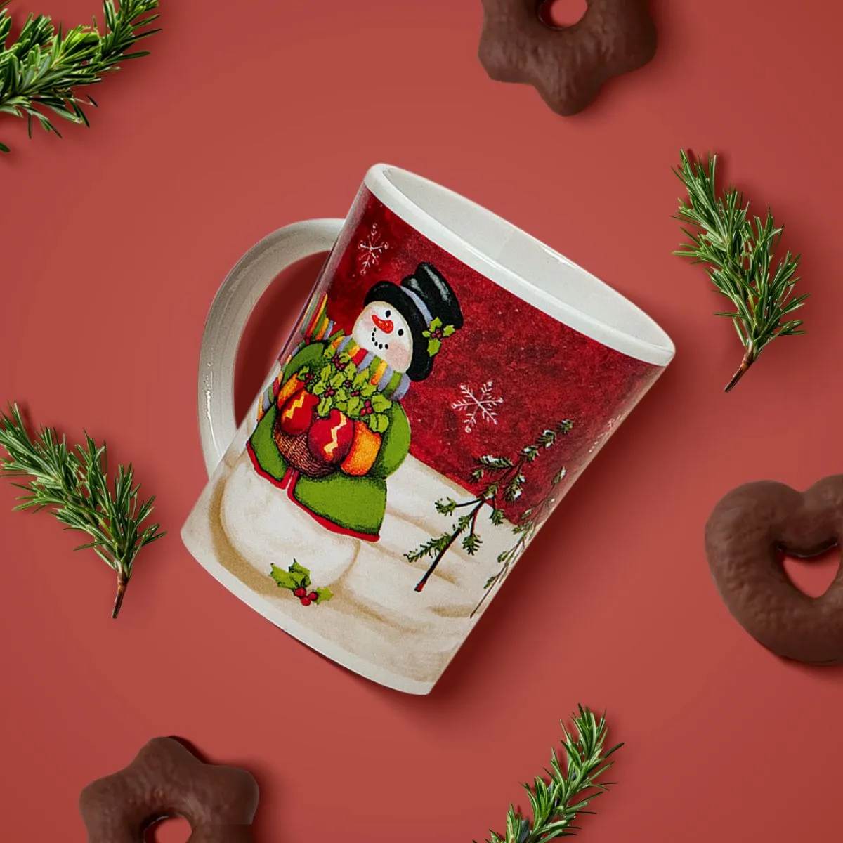 • Große Weihnachtstassen rot und grün mit Schneemann