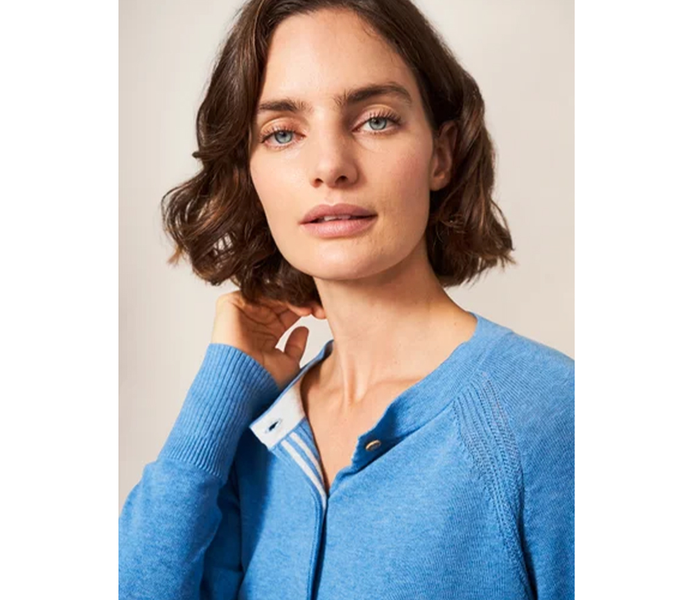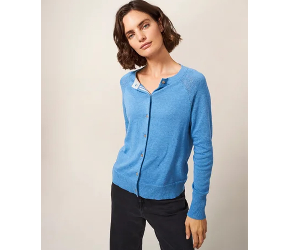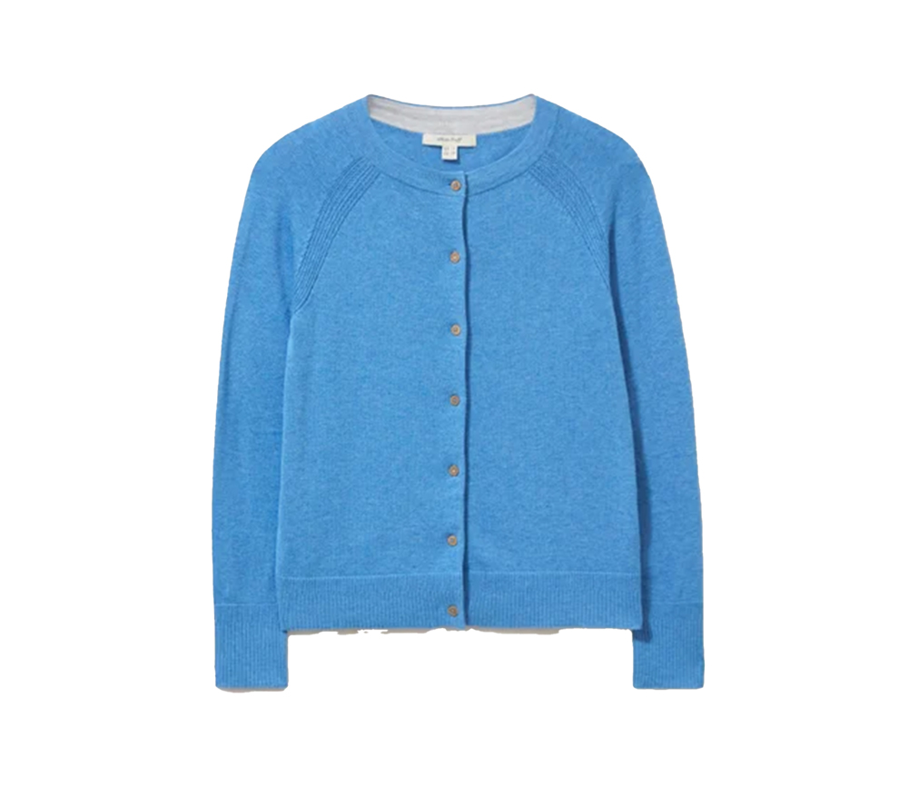 Diese Strickjacke aus Bio-Baumwolle ist leicht genug, um sie immer dabei zu haben, und warm genug, um an kühleren Abenden zu wärmen. Dafür lieben wir sie.