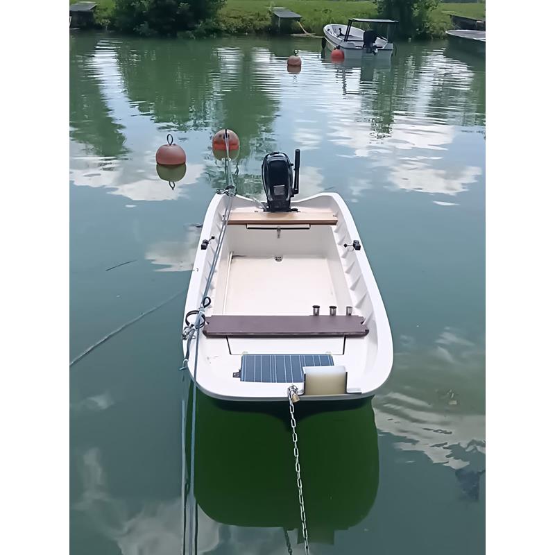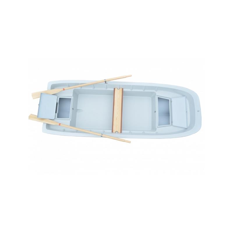 Das Z 330 ist ein doppelwandiges Ruderboot aus Fieberglas und somit unsinkbar. Es bietet 2 große abschließbare Öffnungen (vorne 70×33 cm, hinten 40 x 30 cm) mit Edelstahlbeschläge welche nur noch durch Einhängen mit einem einfachen Bogenschloss gegen Diebstahl gesichert sind. Dank der 3 – Kielform ist es extrem kippstabil bei geringer Wasserverdrängung. Eine Sitzbank kann in beliebigen Platzierungen eingehängt werden.